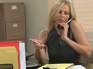 Brunette babe misses her girlfriend so she sucks her big tits while she takes a work phone call.The small tits girl licks her shaved pussy and then asslicks her as she masturbates her cunt.The busty redhead licks her foot and then gives her oral sex