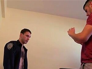 Hairy police officer fucks another's asshole, Two police officers get into handjobs and anal sex with a hairy top fucking a long hard orgasm out of his friend.