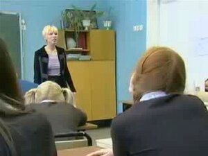 2 students spank and fuck curvy teacher. Curvy teacher accidentally touches 2 cutie students small tits and they trick her into 3some.A petite girl spanks her ass with a rule.She licks the busty redhead hairy pussy as the big tits milf facesits her and the