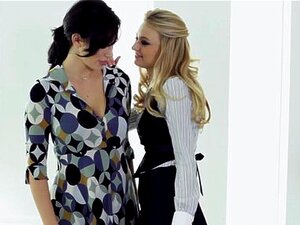 Seductive kitchen encounter between a blonde vixen and a brunette bombshell. Get ready for a tantalizing strip tease and humping action. Explore their wild desires in this milf lesbian adventure!