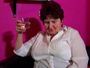 Old fat granny and fat cutie is enjoying with dildo and fresh guy. Chubby granny and fat cutie masturbating and sucking