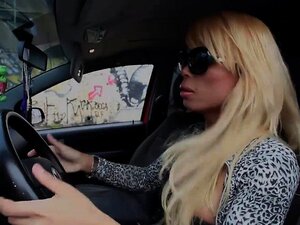 Horny blonde tranny hustler solo big cock jerking